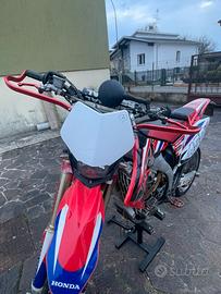 Vendo Honda Crf Hm del 2005 con doppia omologazione per strada ed enduro, omologata per 2 persone, depotenziata solo a libretto, terminale FMF, diversi componenti in ergal e cavalletto centrale