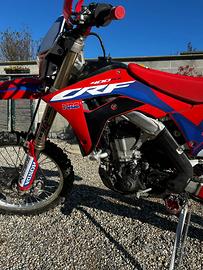 Vendo honda crf 400rx MY 2018. Usata poco 130h tagliandata sempre con olio motul ogni 15 ore. Gomme al 90% al momento monta le camere d'aria ma fornisco mousse semi nuove. Inoltre cedo manubrio renthal e altri componenti. Prezzo leggermente trattabile, vendo per inutilizzo, astenersi perdi tempo.