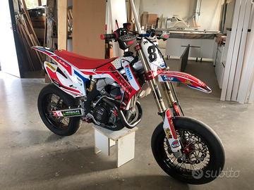 Vendo splendida Honda CRF 450 trasformata in versione supermotard, curata nei minimi dettagli e pronta all’uso pista . Moto in condizioni eccellenti, sempre manutenzionata con attenzione. Monta numerosi componenti aftermarket di qualità (grafiche personalizzate, scarico performante, sospensioni e dettagli racing). Motore potente e reattivo, perfetto per chi cerca adrenalina e prestazioni. Prezzo trattabile