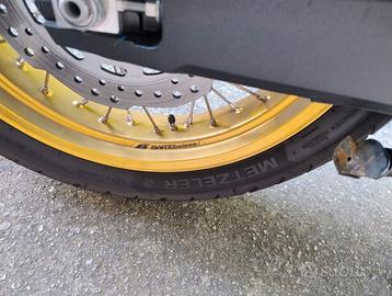 Moto con cerchio anteriore con anti stallonamento, bartubeless ant e post e raggi rinforzati installati nel 2021.