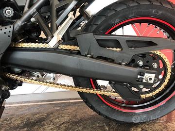 Moto in buone condizioni. Accessoriata con paramotore, tubolari e faretti, manopole riscaldabili, supporto per valigie e bauletto Givi. Tagliandata certificata. Unico proprietario.