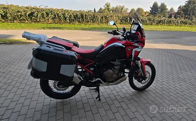 vendo moto Africa Twin come da foto, in ottimo stato, cambio manuale, con manopole riscaldate, cruise control, valigie laterali originali Honda, attacco USB più presa accendi sigari, sella comfort, paramotore, faretti cablaggio Honda, parabrezza maggiorato fumé (+ originale), cavalletto centrale, gomme nuove. Sempre tagliandato in concessionaria Honda. Per qualsiasi informazione contatto whatsapp al n. 3925313055