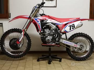 vendo honda crf 250r appena revisionata,usata pochissimo, pronta per essere usata.Vendo anche alcuni pezzi di ricambio tipo molla mono-filtri aria manuale tecnico ufficiale honda ecc...La moto presenta avviamento elettrico con 3 mappature centralina. Nel prezzo sono compresi:cavalletto centrale e tutto il vestiario necessario comprese le imbottiture tg 48-50