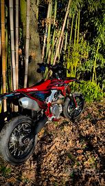 vendo honda crf450r modello 2023 in perfette condizioni, tripla omologazione cross/enduro/motard, con 100h totali da telaio, mai stata usata in pista cross o motard, solo per qualche giro qua in zona e per andare a lavoro.
