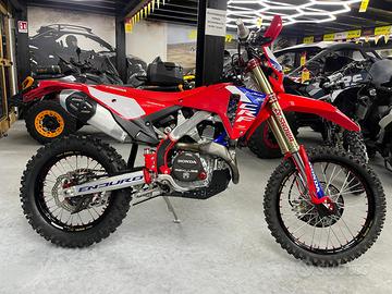 Honda CRF 450 RX enduro 2026 special! • Ruota anteriore Kite con mozzo in alluminio ricavato dal pieno, anodizzato rosso e cerchio Excel anodizzato nero • Ruota posteriore Kite con mozzo in alluminio ricavato dal pieno, anodizzato rosso e cerchio Excel anodizzato nero • Piastra paramotore AXP compresa di protezione leveraggio realizzata in polietilene ad alta densità • Corona in bimetallo, mozzo in alluminio rosso e denti in acciaio. • Piastre forcella X-Trig Rocs in alluminio ricavati dal pieno, anodizzate rosso • Riser supporto manubrio in alluminio X-Trig • Cover sella Blackbird in stile HRC • Tubi radiatore silicone blu • Estrattori perni ruota in alluminio ricavati dal pieno, anodizzati rosso • Tappo pompa freno posteriore in alluminio ricavato dal pieno, anodizzato rosso • Serbatoio maggiorato pompa freno posteriore in alluminio ricavato dal pieno • Tirante freno posteriore in alluminio ricavato dal pieno • Piastrina con cavo di sicurezza per leva freno posteriore • Impianto elettrico semplificato • Kit tappi motore alluminio anodizzati rossi • Coperchio frizione Rekluse • Protezioni telaio Vibram con effetto super grip Diamo in dotazione doppi cerchi cross con gomme nuove! Possibilità di finanziamento.