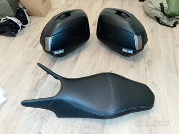 Ben tenuta, 3 parabrezza, modifica manubrio e molti altri accorgimenti estetici, Gomme 50% circa, tris di valigie GIVI e allarme Gemini.