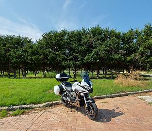 Vendo Honda CrossRunner 800 versione ABS Travel Edition cioè con il tris valigie, faretti, telaio tubolare paracarena, puntale sottomotore, antifurto originale honda, unico proprietario, tenuta sempre in garage, tagliandi tutti in casa madre certificati con fatture, revisione fatta di recente gomme e ultimo tagliando fatti di recente, full led, ha il controllo di trazione su tre livelli disinseribile, monopole riscaldabili, presa usb, parabrezza regolabile, postazione per porta cellulare come navigatore frontale sopra il cruscotto creato su richiesta, più altri accessori, come nuova, la sella si può mettere su due livelli che io ho anche personalizzato, molto più comoda con spugne di qualità e ultimi due centimetri in memori ortopedico e logo Honda,una poltrona. Non scambio con niente astenersi perditempo grazie.