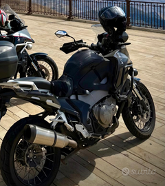 vendo honda crosstourer 1200, con 129 cv, motore V4, anno 2013, km 53 mila... ottimo stato, gommata, batteria nuova, wrapping nella parte anteriore, marmitta leovince titanium, paraserbatoio in pelle, supporto serbatoio per borsa givi, baule posteriore... sensore IAT (riduce l on off e rende la guida molto piu piacevole), filtro sportivo K&N...