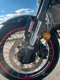 Vendo Honda crosstourer 1200 dct travel edition con 76000 km, perfetta in tutto, gommata ed accessoriata con fari full led, paramani maggiorati, kit adesivi dedicati, navigatore tom tom 550, manopole riscaldate, tris valige originali Honda , borsa dedicata al posteriore , cupolino fume', tubi freni in treccia, sospensioni con molle