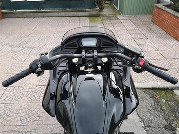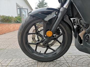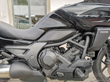 Con: Motore Bicilindrico, cambio automatio DCT, computer di bordo, Abs, faro a Led, raffreddamento a liquido, cavalletto laterale, Forcella telescopica da 41 mm, Mono ammortizzatore con Pro-Link, trasmissione finale a catena, freno a disco da 320mm anteriore e da 240mm posteriore, cerchia da 17".