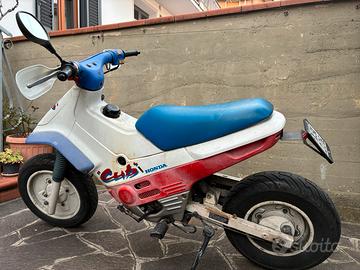 Honda Cub EZ90, revisionato e attualmente in uso. A parte l’oscena mascherina del faro anteriore, le carene sono scolorite, ma non riverniciate; bauletto anteriore di riserva in resina e parafango posteriore in carbonio, attualmente non montato compresi nel prezzo. Non accetto scambi, valuto offerte, non spedisco.