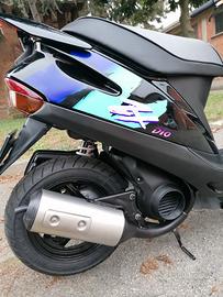 centralina TC unit, cilindro 70cc base in ghisa con spinotto 12, albero motore RHQ corsa 41.5, carburatore 19, filtro aria in spugna, frizione, campana, correttore di coppia, variatore e cinghia, rapporti primari, pacco lamellare, ammortizzatore posteriore RS24.