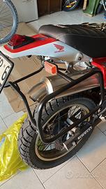 Moto completamente smontata e rifatta 3 anni fa. Kit carena anteriore e codino in vetroresina by Northeastcustom, con grafiche Marlboro abbastanza arroganti, sella rifatta con cuciture a vista. Lavori eseguiti: - Frizione nuova -Catena con 1500km -Pompa freno anteriore con flessibile in treccia aeronautica e disco/pastiglie nuovi -scarico arrow 2 in 1 OMOLOGATO (con carta al seguito) nuovo -manubrio allargato -collettore aspirazione originale nuovo -carburatore revisionato neanche 1000km fa -filtro aria -centralina accensione appema sostituita -Candela e cavo candela nuovi -gomme al 70% -la moto viene consegnata tagliandata. -revisione valida fino al 2027 A corredo anche il kit porta borse laterale. IL TELAIO É ORIGINALE E NON É STATO MODIFICATO. Contattatemi su whatsapp/ subito, come volete. SCAMBIO SOLO CON SOLDI