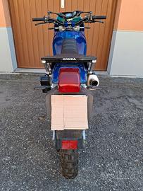 per abbando progetto vendo Honda Dominator monta: -scarico artigianale LM Exaust Sistem -mono Gubellini -Forcelle Showa plurigolabili steli da 52mm con piastre si sterzo (erano di una RM VALENTI) manubrio Rental Fatbar -Strumentazione Koso -specchietti ripiegabili -sella rifatta Mik-R -cassetta porta attrezzi artigianale in alluminio (contiene barre smontagomme) -cavalletto centrale -gomme nuove Continental TKC-80 -frecce led