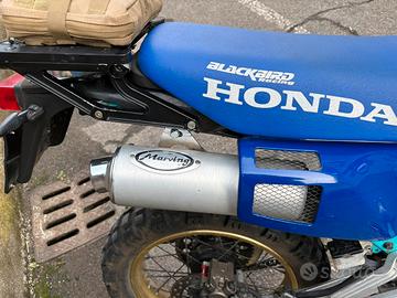 Vendo Honda dominator del 1991, monta scarichi marving omologati, frecce a led, manubrio renthal, paramani in alluminio acerbis, pedane specifiche più grandi delle originali, gomme appena montate mitas enduro trail xt Dakar, pasticche freni brembo rosse nuove davanti e dietro, dischi freno nuovi davanti e dietro, ammortizzatore posteriore yss regolabile anche in lunghezza, catena corona e pignone con meno di 1500 km, membrana carburatore appena sostituita, carburatore pulito a ultrasuoni e revisionato, cavi acceleratore e frizione nuovi, cuscinetti di sterzo sostituiti con quelli conici, presa usb al manubrio e cavo per mantenitore di carica, oltre a quello che si vede nelle foto regalo numerosi ricambi, serbatoio, fiancatine, parafanghi eccetera più parafango posteriore completo originale e le frecce originali.