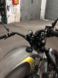 Strumentazione Motogadget: frecce di direzione, contachilometri e comandi al volante