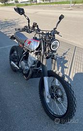 Vendo Unica nel suo genere Honda scramblerizzata su base Dominator..le foto parlano chiare! Adattato serbatoio della Yamaha XT500 introvabile,scarico artigianale ,sella artigianale,fari a led,frecce a led sequenziali,gomme Continental e molto altro. La moto viene venduta compreso il kit nuovo di trasmissione DID. No affaristi o perditempo. Vendo Solo,no scambio!