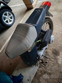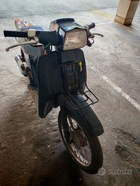 vendo scooter 50. attenzione non è presente il libretto. è rimasto in cantina per 20 anni. ho cambiato pompa benzina, filtro aria , statore , lavato serbatoio olio e benzina , messo blocchetto accensione non originale ( poiché smarrito chiavi) ed è partito subito. presenti frecce tranne supporto perché si è sbriciolato. presente portapacchi posteriore e specchietto . vendo completo al migliore offerente.