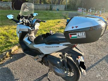 La Honda Forza 300 Deluxe 2020 è un raffinato scooter GT noto per il comfort, la tecnologia e l'elevata capacità di carico, equipaggiato di serie con Smart Top Box da 45 litri e manopole riscaldabili. Dotato di un motore da 279 cc, luci LED, parabrezza elettrico, controllo di trazione HSTC e Smart Key, offre prestazioni eccellenti (25,2 CV). Box che si blocca automaticamente con la chiave intelligente. Motore e Ciclistica: Monocilindrico 279cc, iniezione, raffreddato a liquido, potenza massima 18,5 kW (25,2 CV) a 7.000 giri/min, Euro 4. Equipaggiamento Deluxe: Include Smart Top Box da 45 litri e manopole riscaldate. Dimensioni: Peso in ordine di marcia 182 kg, altezza sella 780 mm. Consumi eccellenti, nel misto 32,7km/l Pneumatico anteriore sostituito da circa 500km Pneumatico posteriore appena sostituito