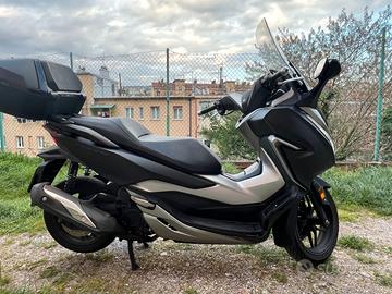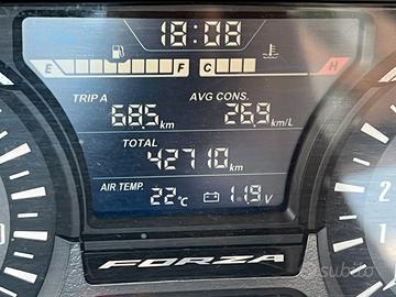 Honda Forza 300 ABS Deluxe (2018) , 43000 km. Revisione valida fino ad Agosto 2027 Tagliandi regolari e documentabili. Pneumatici in ottimo stato. Sempre tenuto in garage. Sistema Keyless integrale (accensione + bauletto posteriore Smart Top Box da 45L). Fornite entrambe le Smart Key originali. Sicurezza: ABS di serie e controllo di trazione (HSTC) disinseribile. Comfort: Parabrezza a regolazione elettrica e manopole riscaldabili. Lo scooter presenta danni alle carene derivanti da una caduta. Si prega di visionare attentamente le foto. Altre foto su richiesta. Richiedo 2200 Euro, trattabili.