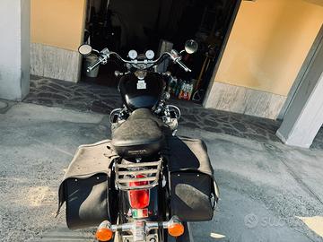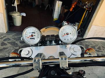 Km circa 79000. Pneumatici Avon Cobra con 2000km ma 5 anni . Accesa e fatta girare regolarmente per mantenimento ma inutilizzata da circa 3 anni. Compreso coppia di fari supplementari , set di di valige aggiuntive , ulteriore coppia di scarichi , parabrezza e sissy bar . Affidabilità e guida ai massimi livelli . Moto per appassionati che la conoscono o per chi cerca un oggetto di pregio per distinguersi dalla massa .