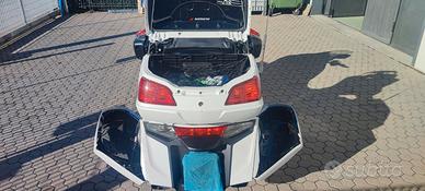 Causa motivi di salute vendo perfetta e bellissima gl 1800 completamente accessoriata come da foto, cavalletto laterale maggiorato, fari led, cassetto portaoggetti elettrico. lettore mp3, coprisella maculato, fregio frontale, presa mantenitore batteria, portatelefono, pedane autostradali ecc. Per ulteriori info non esitate a contattarmi.