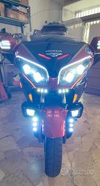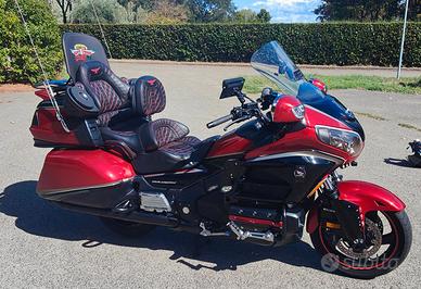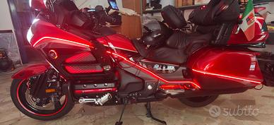 INTROVABILE! Goldwing GL1800 40° anniversario anno 2015 km 84.000 con gancio a libretto. La moto ha moltissimi upgrade oltre a quelli di base standard: fari frontali a led +DRL, frecce a led con luce fissa + sequenziali, luci frontali supplementari sulla ruota e sotto faro con effetto fisso/strobo, fari bassi con funzione fissa e freccia, luci posteriori tutte a led con design lineare e frecce sequenziali, portapacchi nero, spoiler con luce/stop, deflettori laterali, parabrezza VStream, impianto audio migliorato casse anteriori da 130mm 2 vie posteriori box ampliati a 2 vie con woofer 160mm 250w, collegamento bluetooth per audio, collegamento bluetooth per telefono, sella personalizzata 40° nera e rossa Hooligancustom, poggia schiena guidatore Kuryakin personalizzato come la sella, pedane autostradali, sistema led a filo laterale e in vari particolari colore rosso molto d'effetto e non invadente, fioriera posteriore da collegare al sistema del gancio completa di luci e portatarga, (oltre 8mila euro di accessori ). Tutto in ottime condizioni e vengono forniti anche i pezzi originali sostituiti. (Fari, parabrezza, luci posteriori più altre parti). Manutenzioni effettuate da MotoTre Padova.