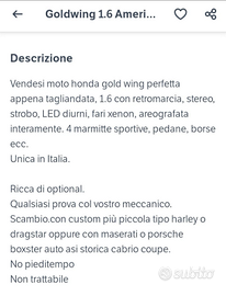 Vendesi o permuta di Honda Gold Wing 1.6 con tantissimi accessori:
