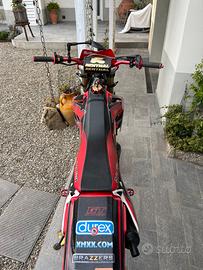 vendo honda hm six competition 50cc del 2003 la moto ha 0 ore ed è ancora in rodaggio, motore rifatto completamete da meccanico preparatore. monta le seguenti componenti: -gomma ant/post 70% -penane poggia piedi in ergal rosso -tappo serbatoio ergal -kit plastiche acerbis -kit grafiche perfonalizzate -copri raggi -faro vface -manubrio ergal rosso -carburatore 21 phbg -cilindro originale 50cc rettificato cromato -varie lacorazioni al blocco motore - cassa filtro lavorata -ammortizzatore posteriore nuovo -forche anteriori revisionate -pancia artigianale calcolata per 50/70 -marmitta finale katrace - portatarga pieghevole vendo per inutilizzo e passaggio a macchina.