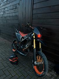 80 parmakit lavorato con carburatore da 28 della stage 6 tubi radiatore arancioni ,con la basetta di 2.5mm sull aspirazione, accensione pvl 30 gradi con la mappa specifica, rapporti 13 54. V face con angel eyes a colori con app,passaggio basso della voga il silenziatore in carbonio, frizione rinforzata 110kg, manopole domino, 2 radiatori,forcelle appena viste, filtro stage 6 doppio , sella wdracing , cupolino accensione carbonio , porta targa reclinabile ruoto posteriore 130 Anteriore 100 , perfetta in tutto marciante. Appena finìto il rodaggio
