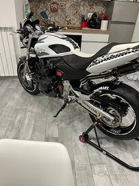 Vendo Honda Hornet anno 2003, completamente rivista nei seguenti lavori è montato tutto nuovo: paraoli, forcella, cuscinetti, sterzo, pinze, freno riverniciate, bianche con logo HRC e tutte le guarnizioni rifatte, tubi freno intreccia, scambiatore acqua olio tutti gli OR nuovi, cerchi riverniciati a polveri nero lucido con cuscinetti nuovi, regolazione precarico molla ammortizzatori anteriori ammortizzatore posteriore della depretto, cupolino faro LED xeno sella rifoderata, catena corona pignone con 4000 km paratie laterali wrappare in carbonio, batteria nuova gommata all'85%, e molti altri lavori. La Moto non ha alcun lavoro da fare da salire in sella e fare chilometri. Ricoverata sempre in Casa o in box.. la Moto da contachilometri a 80.000 ma è stato sostituito il motore e ad oggi ha percorso in totale 42.000 km con questo motore, insieme alla moto do svariati pezzi originali e non non posso fare un elenco qui.