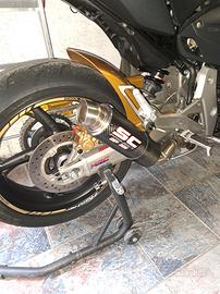 Causa cambio moto, vendo ottima Hornet 600 del dicembre 2009 con 34.300 km. La moto e' stata tenuta in modo maniacale, tagliandi effettuati ogni 5000 km circa ed e' allestita con i seguenti accessori: cupolino fume, frecce e specchietti barracuda, manubrio- leve- manopole- parafango posteriore e coperchio serbatoio freni sono colore oro, tamponi paratelaio rizzoma. Freni tubi in treccia, pasticche freni brembo, filtro aria BMC. A circa 28.000 km revisione completa forche e ammortizzatore, sostituito trasmissione ( catena, corona e pignone da 14 denti) pasticche freni ed eseguito tagliando. Possibilita', prezzo a parte, di collettori e scarico SC Projet GP M2 (come da foto). Moto pronta per qualsiasi prova, a disposizione per qualsiasi domanda o foto