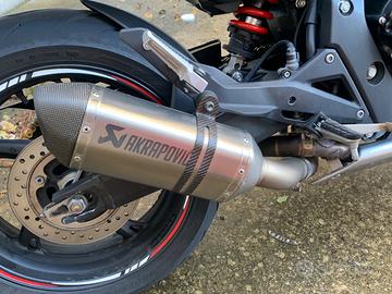 La moto monta scarico akrapovic con certificato di omologazione, cupolino, paramotore barracuda, kit trasmissione nuovo della DID, gomme nuove Pirelli diablo rosso IV, filtro BMC, manubrio della srt nero, tutti i tagliandi eseguiti presso officina Honda.