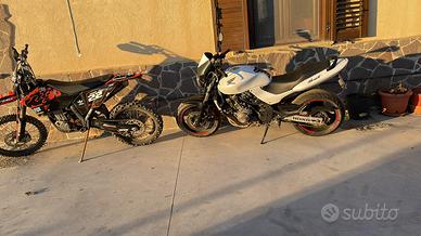 Insieme cedo: altro motore completo + cambio, forcella anteriore completa + ruota + freno + manubrio, forcellone posteriore + ruota + freno,