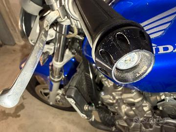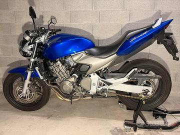 Vendo Ho da Hornet 600 blu, anno 2003, a carburatori, km 45553, corona, catena, pignone fatte a 30000 km, tubi in treccia, frecce Barracuda Viper, manubrio e pesi manubrio SRT, con piega media, nottolini DPR per cavalletto posteriore a forcella, gomme buone. Euro 1.200 con passaggio a carico dell'acquirente
