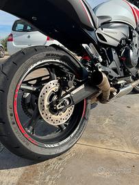 La moto monta gomme bridgestone doppia mescola al 70%