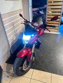 La moto monta diversi accessori: Scarico completo, leve regolabili , manopole dedicate , specchietti sportivi , para radiatore e porta targa sportiva.