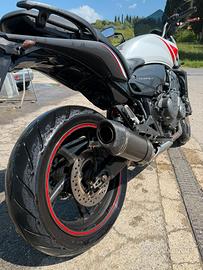 Vendo Honda Hornet 600 del 2009, come si evince dalle foto la moto è stata usata come mezzo di trasporto casa lavoro e qualche uscita domencale per cui ha quel kilometraggio. La moto ha finale in carbonio sc project ,frecce barracuda , cupolino scuro e sella intera gel . Pasticche brembo , catena pignone e corona eseguita 700km fà e gomme all’80%. Bollo pagato 2026. Inoltre incluso nel prezzo tris di valige rigide ottime per vacanze . Unica pecca , rimettere manopole e pesi nuovi ( mancante uno e molto esaurite ) e interruttore frecce a volte fa le bizze .Non ho tempo per sistemarla per cui il Prezzo è lievemente trattabile . Moto mai caduta o incidentata. Paracarter sciupati per lavaggio errato del precedente propieterio. Per appuntamenti solo venerdi pomeriggio o sabato . Mezzo perfetto per prima moto evitare offerte ridicole.