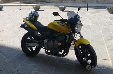 Ripropongo Honda Hornet 600, giallo perla metallizzato, in buone condizioni generali, prima serie, anno 2001, circa 44000 km. Moto in uso dal 2022, ho fatto circa 9000 km. Moto meccanicamente a posto, esternamente qualche difetto e segni di ossidazione in giro. Lavori effettuati: 2022: revisione forcelle e pasticche anteriori 2023: gomme (poco consumate 5000 km) 2024: revisione a maggio 2025: tagliando completo, cambio olio e liquidi, filtri, candele e radiatore nuovo 2026: revisione da fare entro 31 maggio Accessori: Forcelle anteriori con cartucce regolabili Matris, marmitta LeoVince omologata con dbKiller, cupolino scuro. Includo, smontati a parte: marmitta originale, manubrio originale di riserva, Kit fari allo Xenon, secondo codino. La moto è molto bella e pronta per l'uso. Per vederla contattatemi tramite Messaggio Telefonico o WhatsApp, risponderò non appena possibile. Sto vicino Perugia, Magione, Umbertide. Giordano