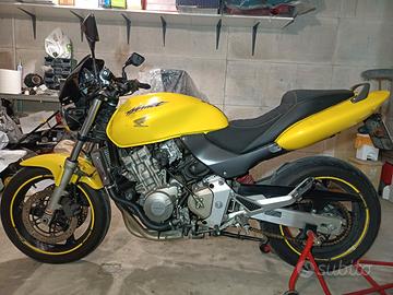 Vendo Honda Hornet 600 a carburatori con 82000 km, per passaggio ad "adventure". La moto ha frecce piccole, porta targa sportivo, griglia para radiatore, manopole e leve sportive, sottocodone con luce a led e scarico Mivv Xcone (suono spettacolare). La catena è stata sostituita dieci mila km fa e manutentata (pulizia e ingrassatura) ogni 500 km. Gli pneumatici sono al 50%. E' stata modificata la copertura della sella per una maggiore comodità sia del guidatore, sia del passeggero. SONO IN POSSESSO ANCHE DEI SUOI PEZZI ORIGINALI E LA MOTO POTREBBE ESSERE ISCRITTA COME D'EPOCA (possibilità di pagare bollo e assicurazione agevolati). L'unico accessorio che non ho più originale è la sella in quanto è stata rifatta.