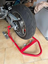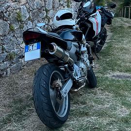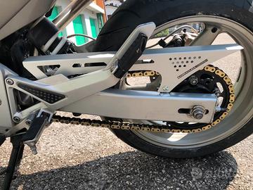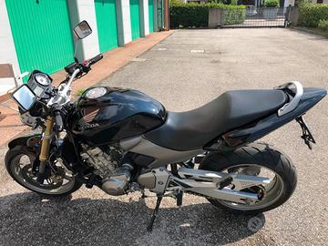 Vendo Honda Hornet 600 model year 2006 (immatricolata inizio 2007), ultimissima versione a carburatori. Moto con poco meno di 36.000 km, sempre mantenuta con cura e tenuta in garage sotto telo protettivo. Trasmissione (catena, corona e pignone) sostituita nel 2020, percorsi circa 8.000 km. Accessori: - Scarico Roads Italia - Manubrio piega bassa SRT color alluminio - Leve freno e frizione snodabili nere V-Trec - Specchietti neri sportivi - Frecce sportive - Tamponi paramotore - Paracatena Barracuda in alluminio installato 2020 - Manopole con protezioni - Tubi freno in treccia - Batteria gel NUOVA Disponibili anche tutti i pezzi originali, tranne il manubrio. Compresi nel prezzo cedo anche il cavalletto sollevamoto posteriore con ruote e set di pastiglie Brembo per freni anteriori nuove ancora imballate. Nel 2019, poco dopo l’acquisto (ex moto di un mio caro amico), la moto ha avuto una caduta a bassissima velocità (circa 10km/h):il serbatoio è stato riparato e riverniciato (purtroppo al momento non avevo ancora installato le protezioni). Presente solo un leggero segno di 2 cm su supporto faro in alluminio anteriore lato sinistro. La moto è pronta all’uso; per essere perfetta si consiglia normale tagliando olio e filtri annuale. Gomme con pochi km ma del 2020, secondo me volendo un’altra stagione la possono anche fare. Vendo solo per passaggio ad altra moto e mancanza di spazio. Ideale come prima moto, facile da guidare, divertente e con un sound che una moto nuova di oggi e di pari cilindrata si puó sognare. Modello che dal 2027 sarà iscrivibile ASI, con i relativi vantaggi di bollo ed assicurazione ridotti. Prezzo trattabile, disponibile per qualsiasi informazione. Per cortesia no perditempo e affaristi. No scambi, solo vendita.
