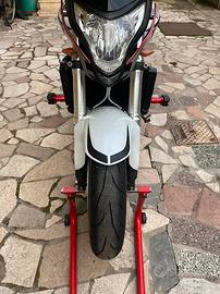 Hornet 600 del 2011. Gomme, olio e filtro nuovi. Monta molle forcella Ohlins, cupolino frecce portatarga Barracuda, piega e riser Rizoma, scarico Termignoni omologato, tamponi paratelaio. La moto ha 27711 km, monta pignone con 1 dente in meno e centralina x taratura tachimetro, ha un paio di difettucci estetici. Cedo con cavalletti. A parte disponibile abbigliamento tecnico.