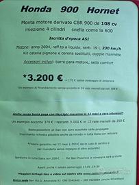 Monta motore derivato della CBR 900 iniezione da 108 cv, snella e compatta come la 600 ed iscritta d'epoca ASI Possibilità di pagamento ANCHE SENZA BUSTA PAGA tutti i dettagli su foto scheda verde >> Spediamo in tutta Italia con 200 euro La consegna per Bari e Provincia è gratuita Rispondiamo anche whatsapp