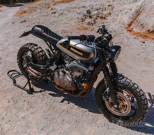 Honda Hornet completamente trasformata da professionista del settore, con chiara ispirazione Scrambler/Café Racer.