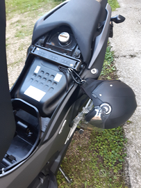 Monta cupolino nero sportivo, i maniglioni per il passeggero (senza bauletto), porta-cellulare con cavo collegato alla batteria e diverse decalcomanie.