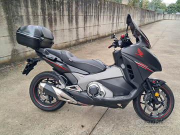 Honda Integra 750 S DCT prima immatricolazione ottobre 2019, full optional con tris di valigie originali honda, sella confort Shad, doppia presa USB, portacellulare, doppio parabrezza originale e sportivo Puig, estensione parafango posteriore Rossocromo, estensione cavalletto, faretti aggiuntivi, pedaline aggiuntive. Moto non incidentata, mai caduta ed e stata tenuta in maniera maniacale in garage con le plastiche pari al nuovo. La moto e stata sempre tagliandata in Honda per tutta la durata con ultimo tagliando fatto a giugno in officina autorizzata. Trasmissione rifatta a 40.000 km. Bollo con scadenza luglio 2026 e revisione fino a ottobre 2025. Condizioni estetiche eccellenti senza segni o graffi evidenti.