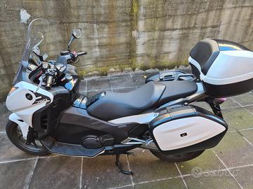 Motociclo Honda nc750d INTEGRA , immatricolato giugno 2015 , revisioni ok, perfetto , unico proprietario, km 14.532, tenuto sempre in garage, gomme nuove, compresi parabrezza, bauletti laterali, bauletto posteriore,scarico akrapovic + scarico originale honda e manopole riscaldate ,vendo causa inutilizzo, ad euro 4.800,00 NON TRATTATIBILI . Caratteristiche: MOTORE Tipo di motore: bicilindrico in linea, SOHC, 4 tempi, 8 valvole, raffreddato dall'acqua Cilindrata del motore 745 cc Alesaggio x corsa 77 mm x 80 mm Rapporto volumetrico 10,7:1 Potenza massima 40,3 kW a 6.250 giri/min (95/1/CE) Coppia massima 68 Nm a 4.750 giri/min (95/1/CE) Capacità olio 4,1 litri CIBO Iniezione elettronica tipo PGM-FI Capacità carburante 14,1 litri Consumo (WMTC) 28,9 km/l ( standard WMTC in modalità D ) TRASMISSIONE Frizione multidisco a bagno d'olio , doppia frizione Cambio DCT a 6 marce Trasmissione finale: catena con O-ring TELAIO Acciaio tipo diamante PARTE CICLISTICA Dimensioni (L x P x A) 2195 mm x 810 mm x 1440 mm Passo 1525 mm Angolo di caccia 27° Caccia da 110 mm Altezza seduta 790 mm Altezza da terra 135 mm Peso a pieno carico: 237 kg SOSPENSIONI Tipo di forcella anteriore : diametro 41 mm , escursione 120 mm Tipo posteriore : Monoammortizzatore con forcellone Pro-Link , Escursione di 120 mm RUOTE Cerchi anteriori in alluminio pressofuso Cerchi posteriori in alluminio pressofuso Dimensione anteriore 17M/C x MT3.50 Dimensione posteriore 17M /C x MT4.50 Pneumatici Avent120/70-ZR17M/C (58W) Pneumatici posteriori 160/60-ZR17M/C (69W) FRENI Tipo ABSABS con 2 canali Tipo anteriore : Freno a disco idraulico singolo, ø 320 mm, con pinza 2 pistoni e pastiglie in metallo sinterizzato Tipo posteriore : Freno a disco idraulico singolo, ø 240 mm, con pinza singola pistone IMPIANTO ELETTRICO Strumenti: Tachimetro, contagiri a barre, orologio, indicatore del livello del carburante a barrgiornaliero, tachimetro, consumo di carburante