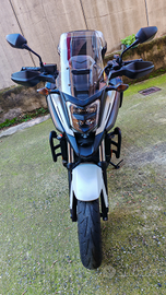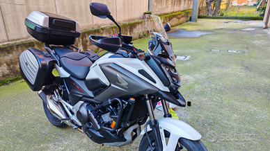 Vendo Honda nc 750 x dct del 2019 perfetta. Tagliandata, revisionata, con gomme nuove e batteria e pastiglie freni nuove. 36.800 km. Con cupolino originale basso e alto fumè per l'inverno. Cedo con borse laterali e bauletto tutti originali Honda. Modello con Controllo di trazione. Moto perfetta.