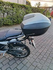 Magnifica Honda cambio automatico DCT 6 marce, incredibile motore molto efficiente ( molto parco nei consumi, davvero eccezionali) con bauletto (3 dimensioni), due borse laterali Gigi e pratico borsa serbatoio 10 lt sopra porta casco apribile ( al posto del serbatoio). Catena corona pignone revisione fatte a settembre. Bella davvero, usata da espero sessantenne.