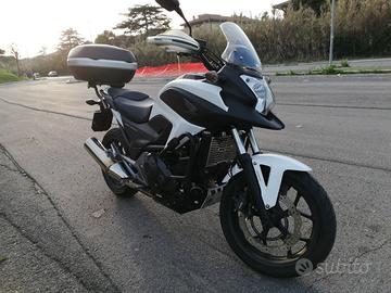 Honda NC750X ABS del 2014 in perfette condizioni, 67150Km, con bauletto e griglietta radiatore e paramotore.